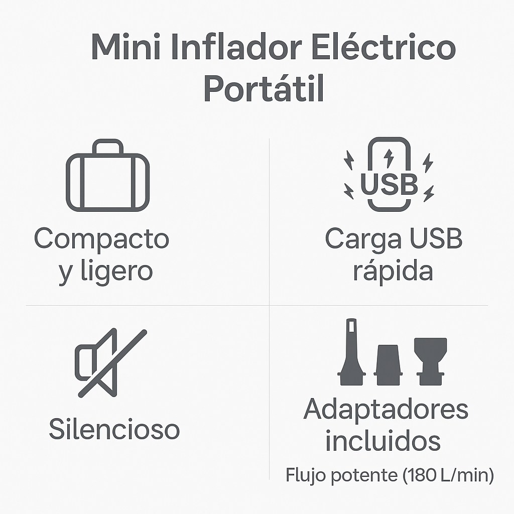 Está diseñado para objetos pequeños y medianos como flotadores, colchones inflables individuales, pelotas, sacos de vacío y equipos de camping. No es recomendable para piscinas grandes o neumáticos de coche.